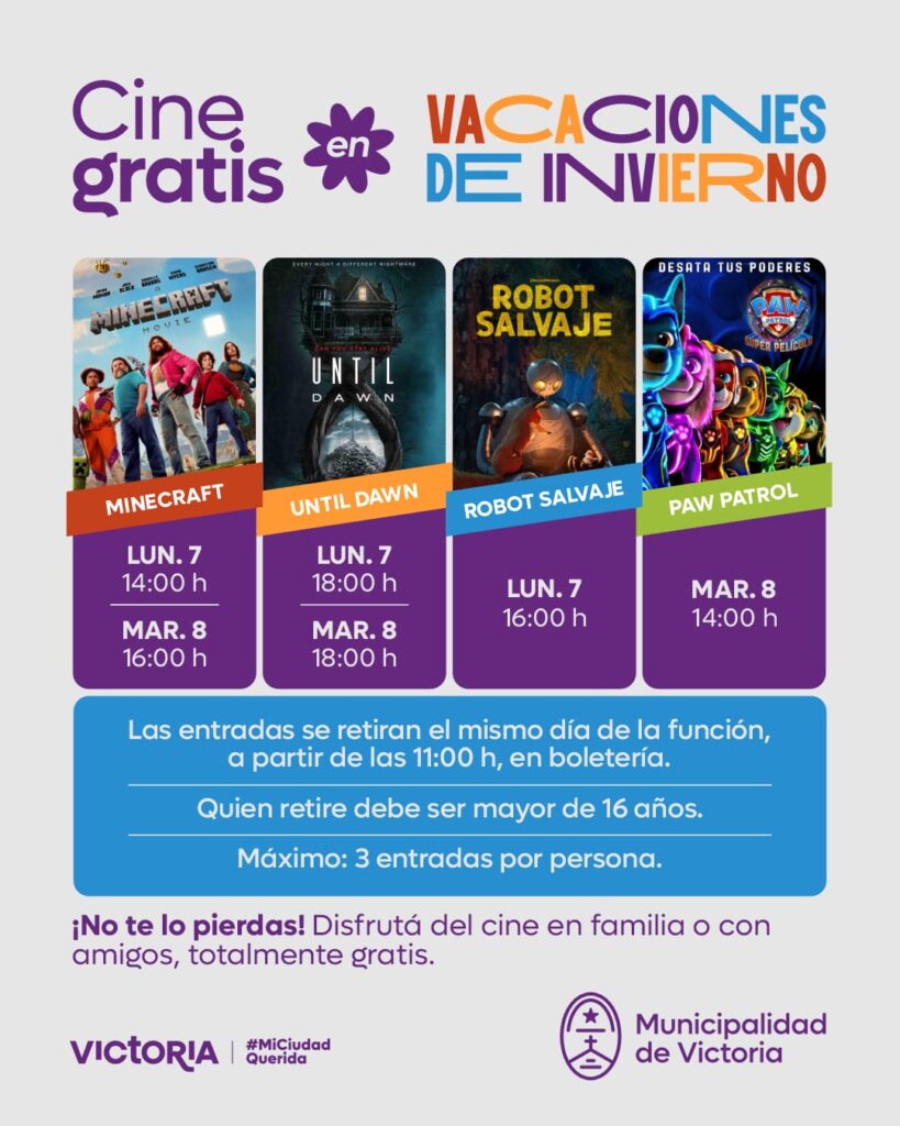 ¡Ya podés consultar la cartelera gratuita que la Municipalidad de Victoria preparó para estas vacaciones! 🎥