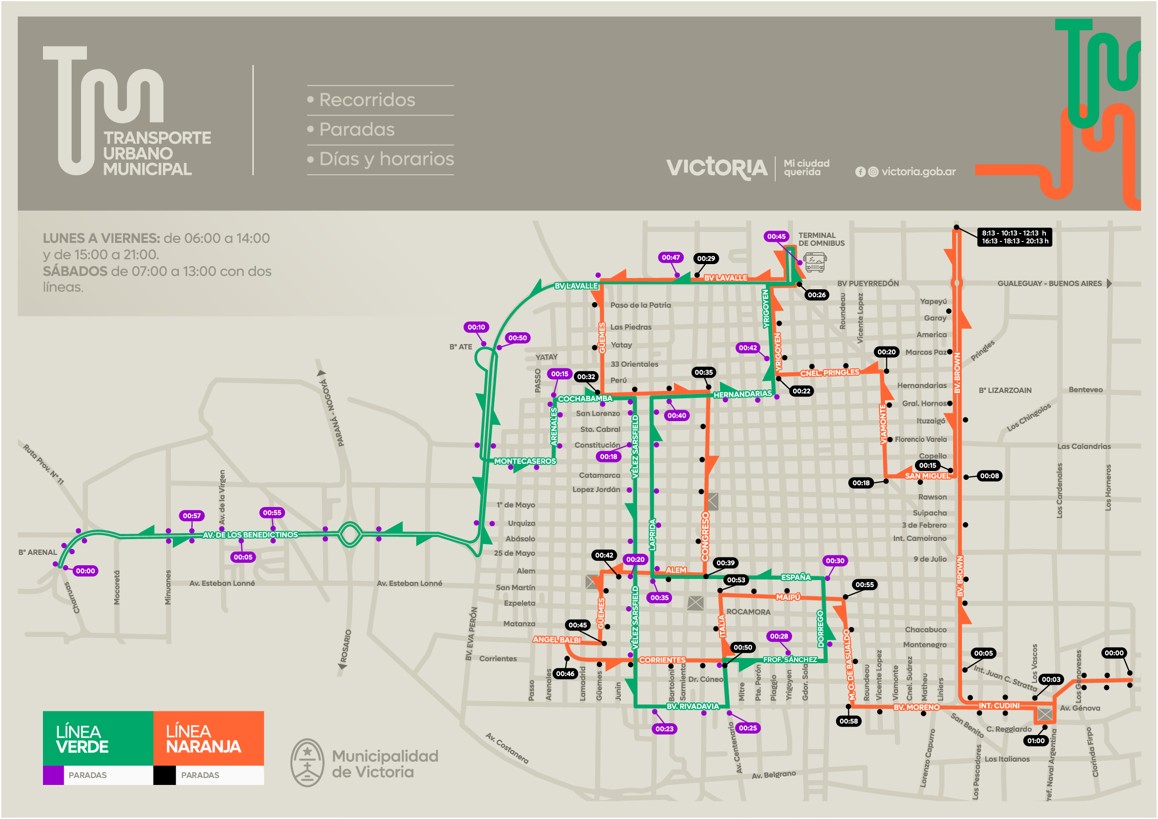 La Municipalidad de Victoria informa que, tras finalizar las tareas de reparación, el Transporte Urbano Municipal (TUM) restablecerá su funcionamiento habitual con ambas líneas (Naranja y Verde) a partir de las 12:00 h de hoy 30 de octubre.
