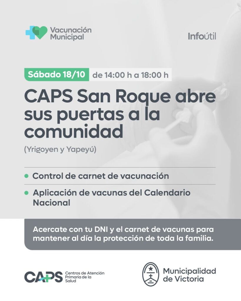 Este sábado 18 el CAPS San Roque (📍 Yrigoyen y Yapeyú) abre sus puertas para la comunidad de ⌚ 14:00 a 18:00 h.