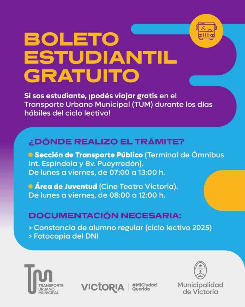 Si sos estudiante, ¡podés viajar gratis en el Transporte Urbano Municipal (TUM) durante los días hábiles del ciclo lectivo!