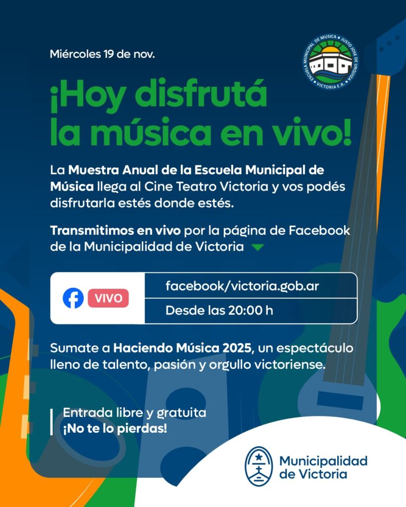 La Muestra Anual de la Escuela Municipal de Música llega al Cine Teatro Victoria y vos podés disfrutarla estés donde estés.