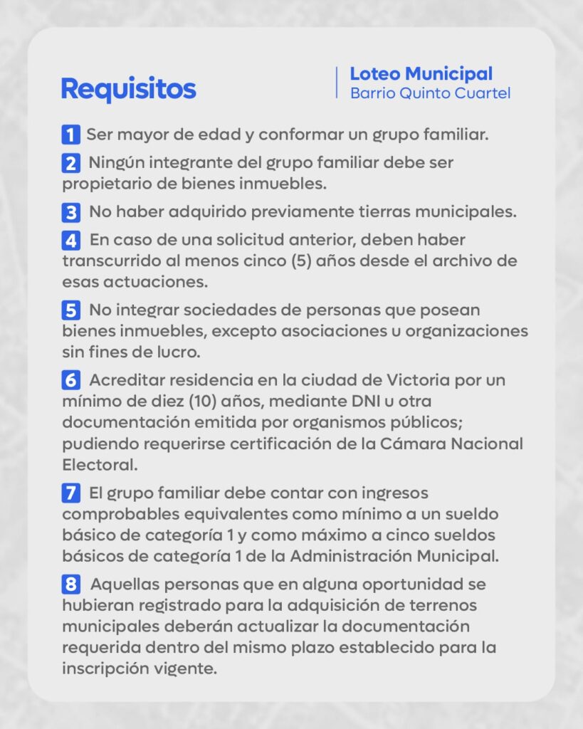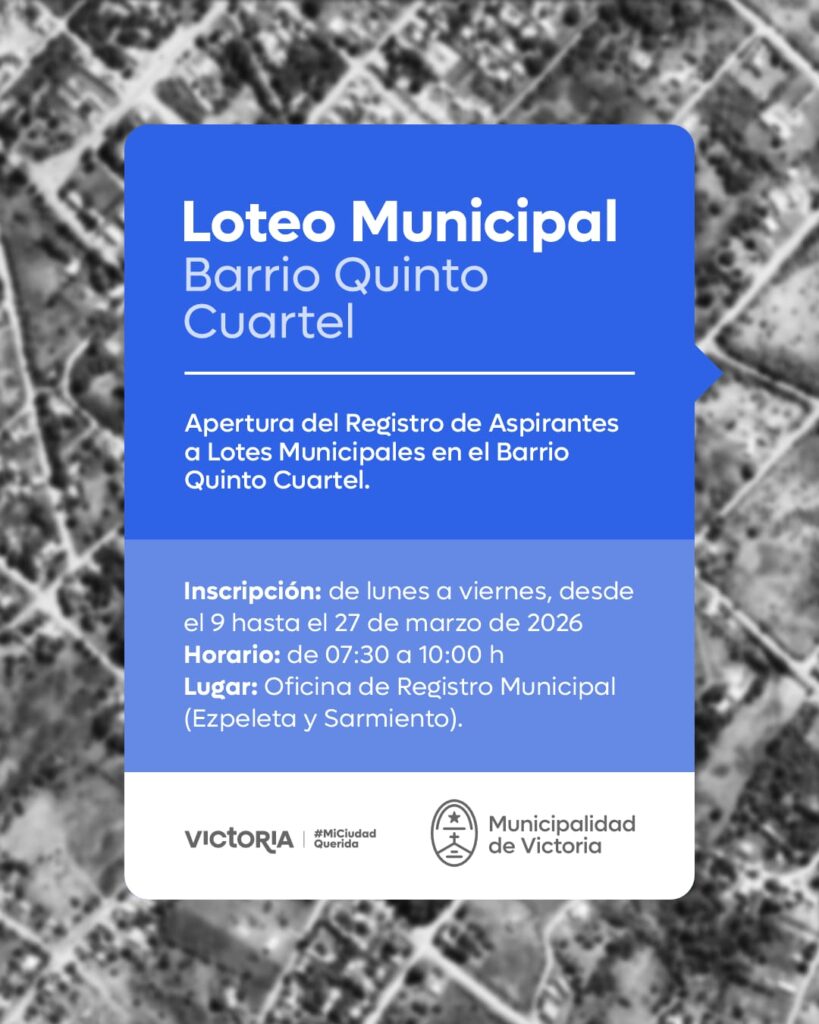 Apertura del Registro de Aspirantes a Lotes Municipales en el Barrio Quinto Cuartel.