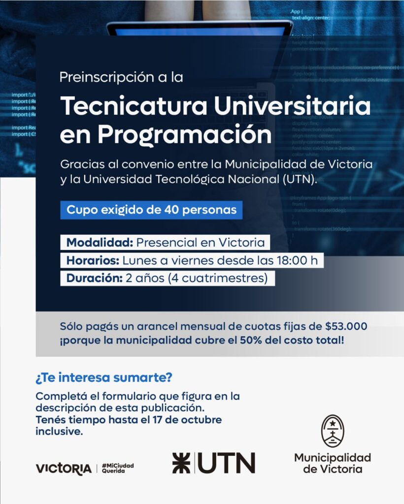 🤝🏼 Gracias al convenio entre la Municipalidad de Victoria y la Universidad Tecnológica Nacional (UTN).