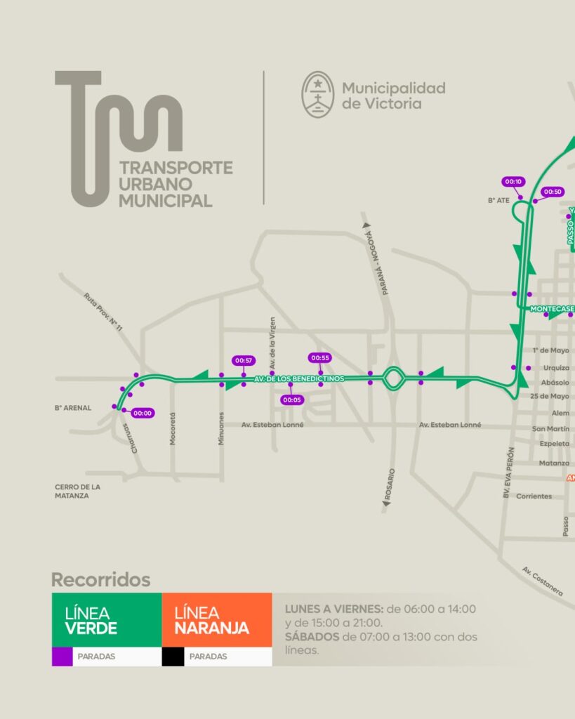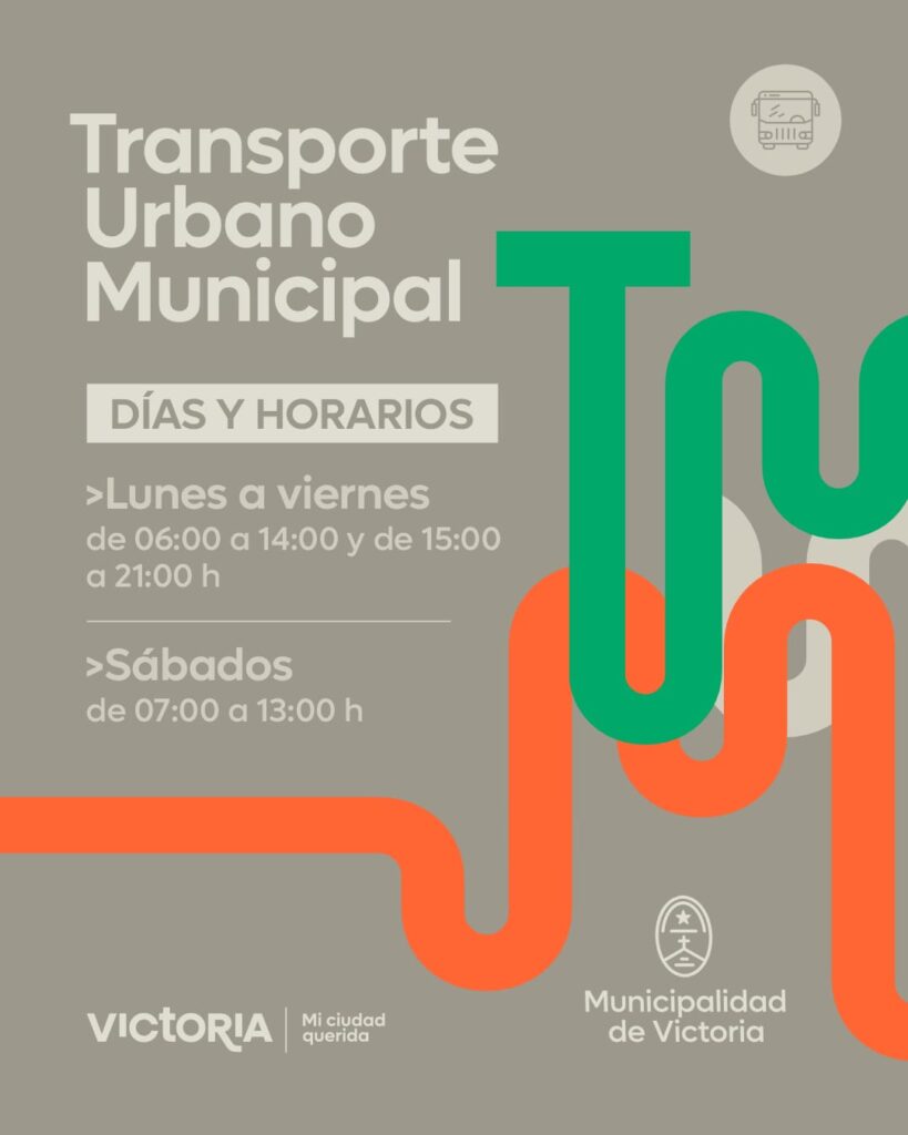 La Municipalidad de Victoria informa que, tras finalizar las tareas de reparación, el Transporte Urbano Municipal (TUM) restablecerá su funcionamiento habitual con ambas líneas (Naranja y Verde) a partir de las 12:00 h de hoy.