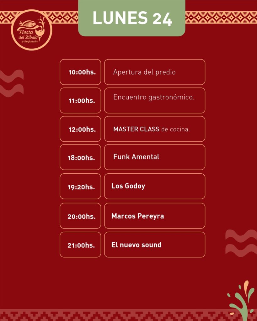 Te compartimos el cronograma oficial de la Fiesta del Sábalo y Regionales: tres días llenos de música, sabores, tradición y actividades para toda la familia.