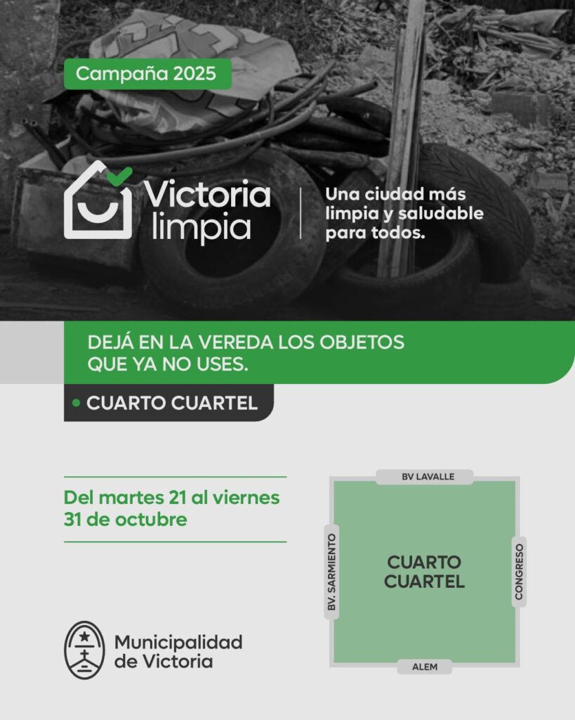 ℹ️ Si sos vecino del Cuarto Cuartel, ¡podés sacar a la vereda tus objetos en desuso desde el martes 21 hasta el viernes 31 de octubre.
